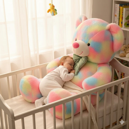 Notre Ours en Peluche Géant | Câlinours aux couleurs arc-en-ciel est particulièrement apprécié pour son aspect joyeux et sa taille généreuse qui invite aux câlins sans fin.